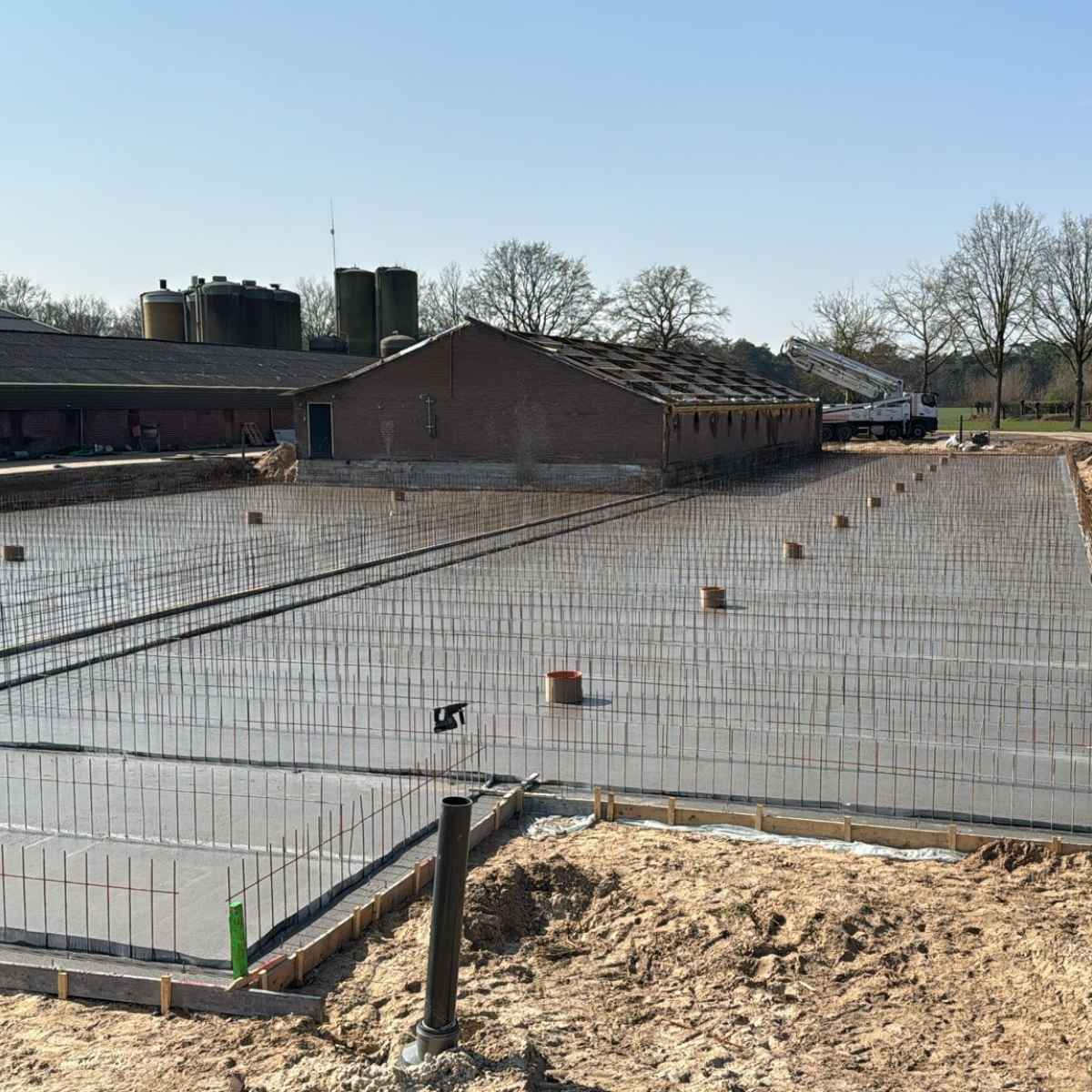 De werkzaamheden zijn gestart met de realisatie van de vloer, waarbij nauwkeurigheid en kwaliteit centraal stonden. Aansluitend wordt er direct doorgepakt met de volgende fase: het plaatsen van circa 1.600 meter aan betonnen wanden. Deze wanden zorgen voor de constructieve stevigheid en vormen de basis van het verdere bouwwerk.